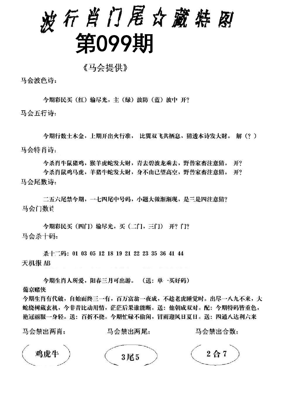 | 三行中特 | 野兽与家畜 | 推荐1肖 |